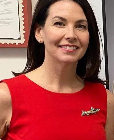 Our MP Kristina Tesser Derksen wears the dace pin we gave her, hoping she’ll talk to other Members of Parliament about this fish’s story.